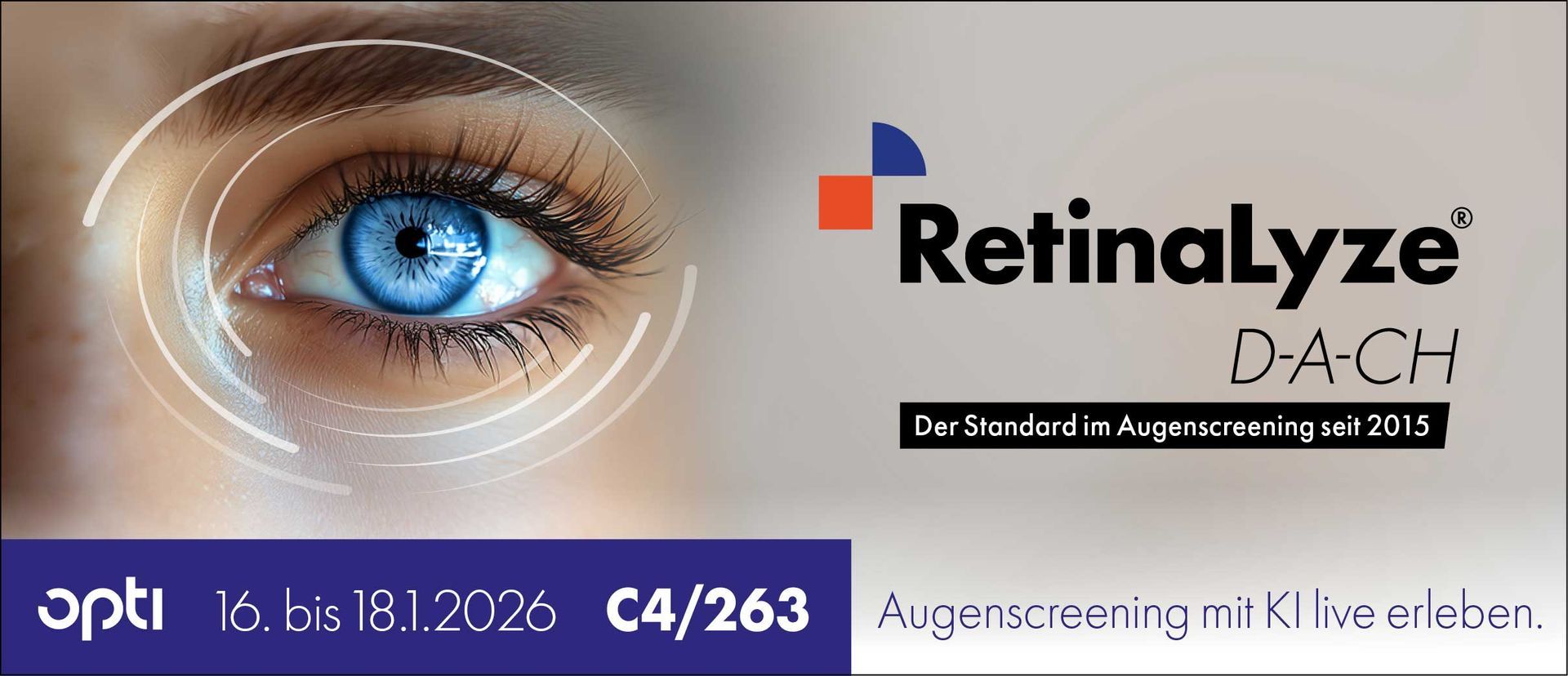 Der Besuch des RetinaLyze-Stands bei der opti lohnt sich in vielfacher Hinsicht. Besuchen Sie das ORIGINAL in Sachen KI! Sie können sich zudem auch bei unseren Partnern über die Möglichkeiten der KI-Software informieren.