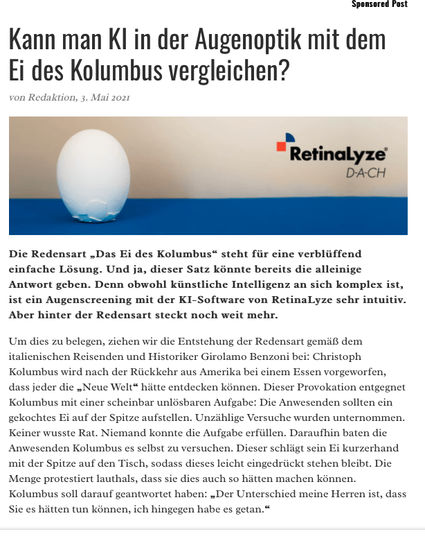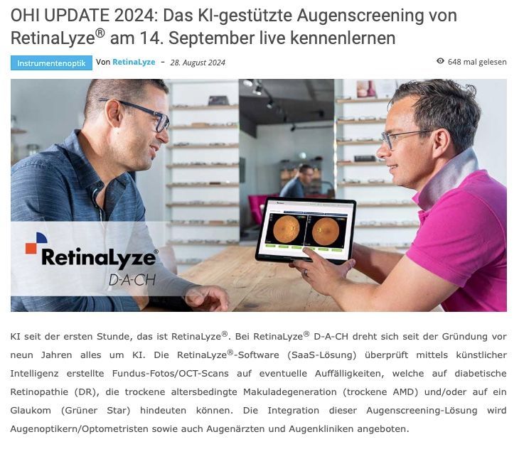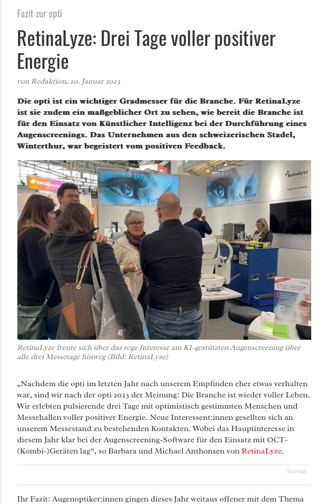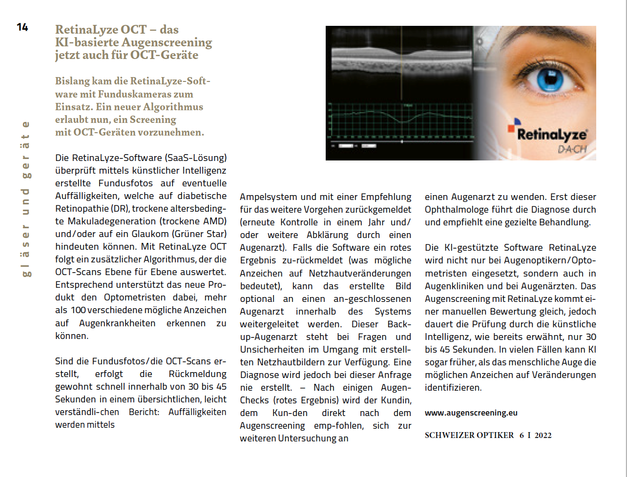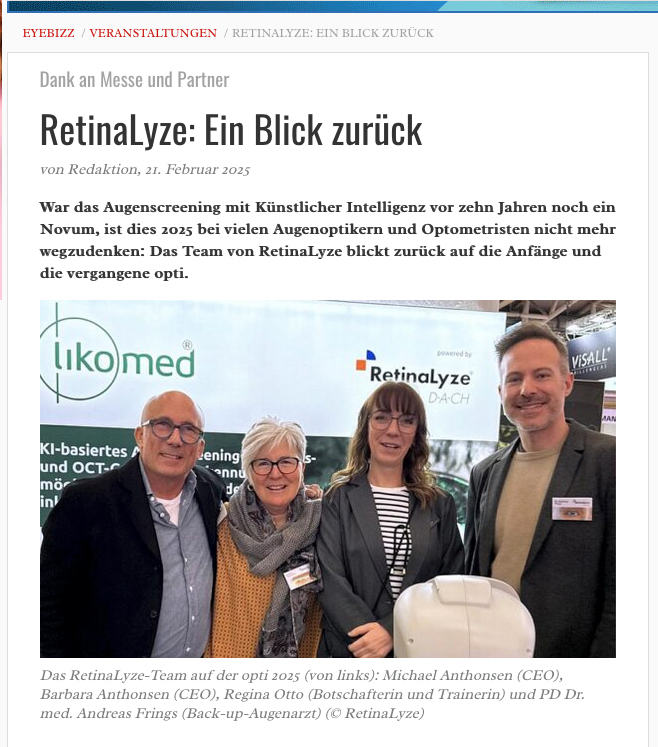 nach Deutschland, Österreich und in die Schweiz zu bringen. Als erster RetinaLyze-Distributor in Europa übernahmen sie damit eine Vorreiterrolle.